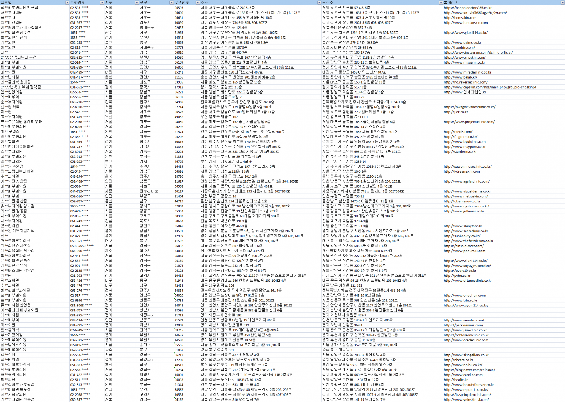 #피부과주소록 #피부과디비 #피부과DB #전국피부과리스트 #전국피부과 #피부과연락처 #피부과목록