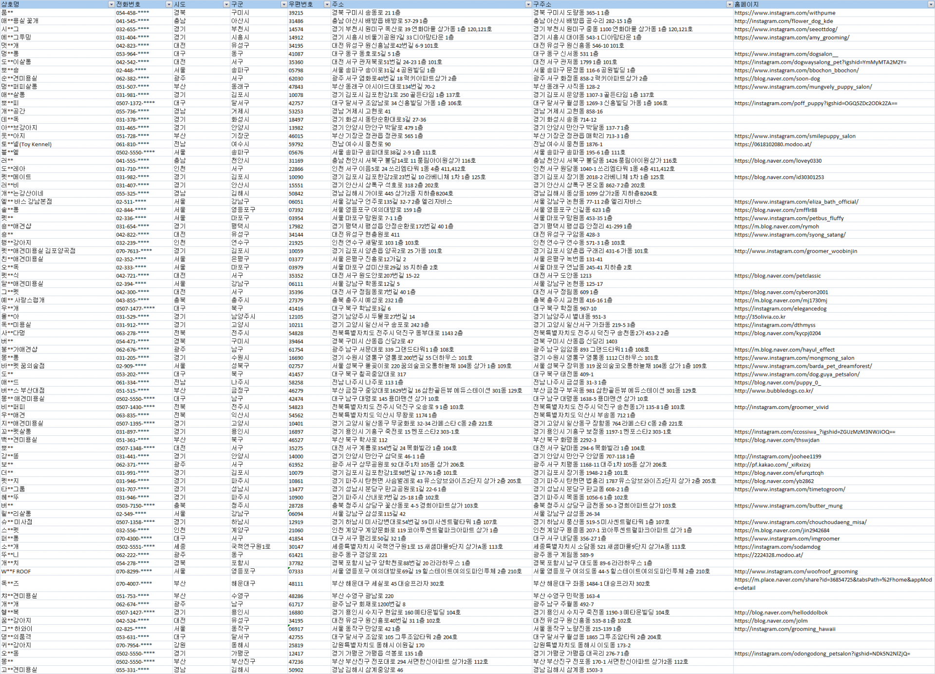 전국 애견미용실 주소록