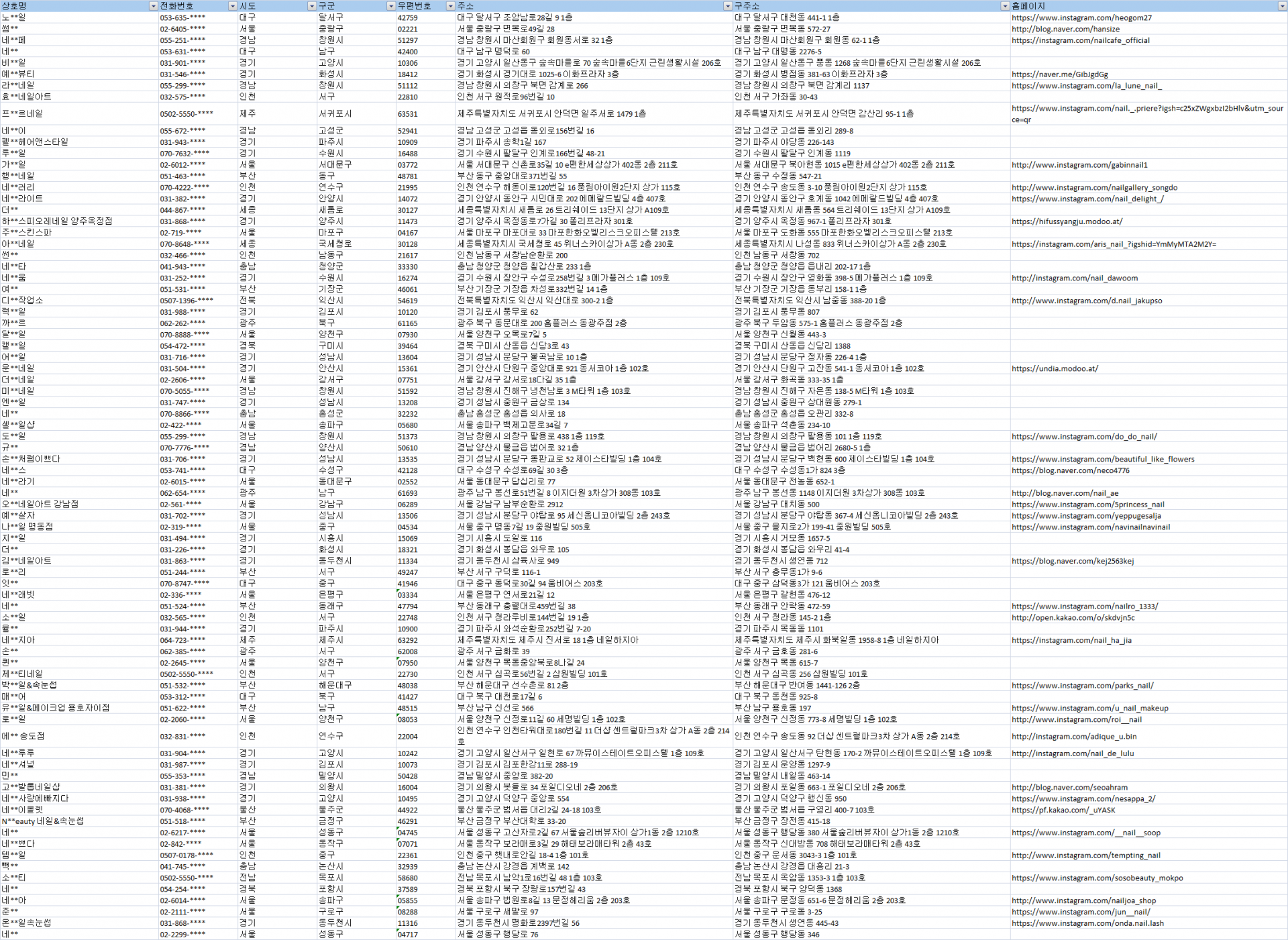#네일샵주소록 #네일샵디비 #네일샵DB #전국네일샵리스트 #전국네일샵 #네일샵연락처 #네일샵전화번호 #네일샵목록 #네일아트 #네일전문점