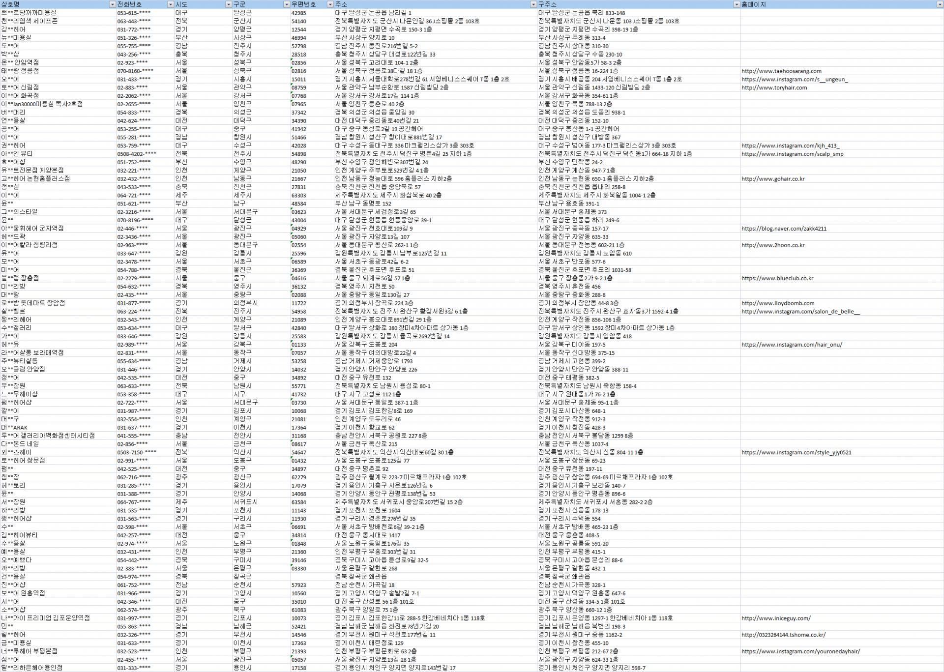 전국 미용실 주소록