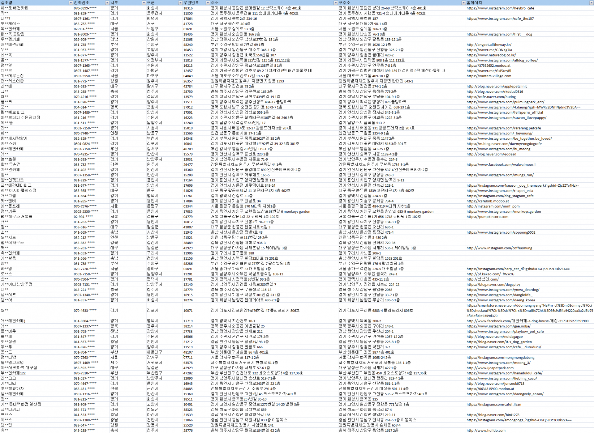 전국 애견카페 주소록