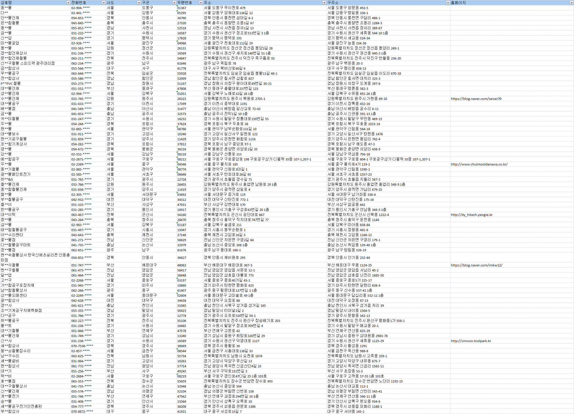 전국 철물점 주소록