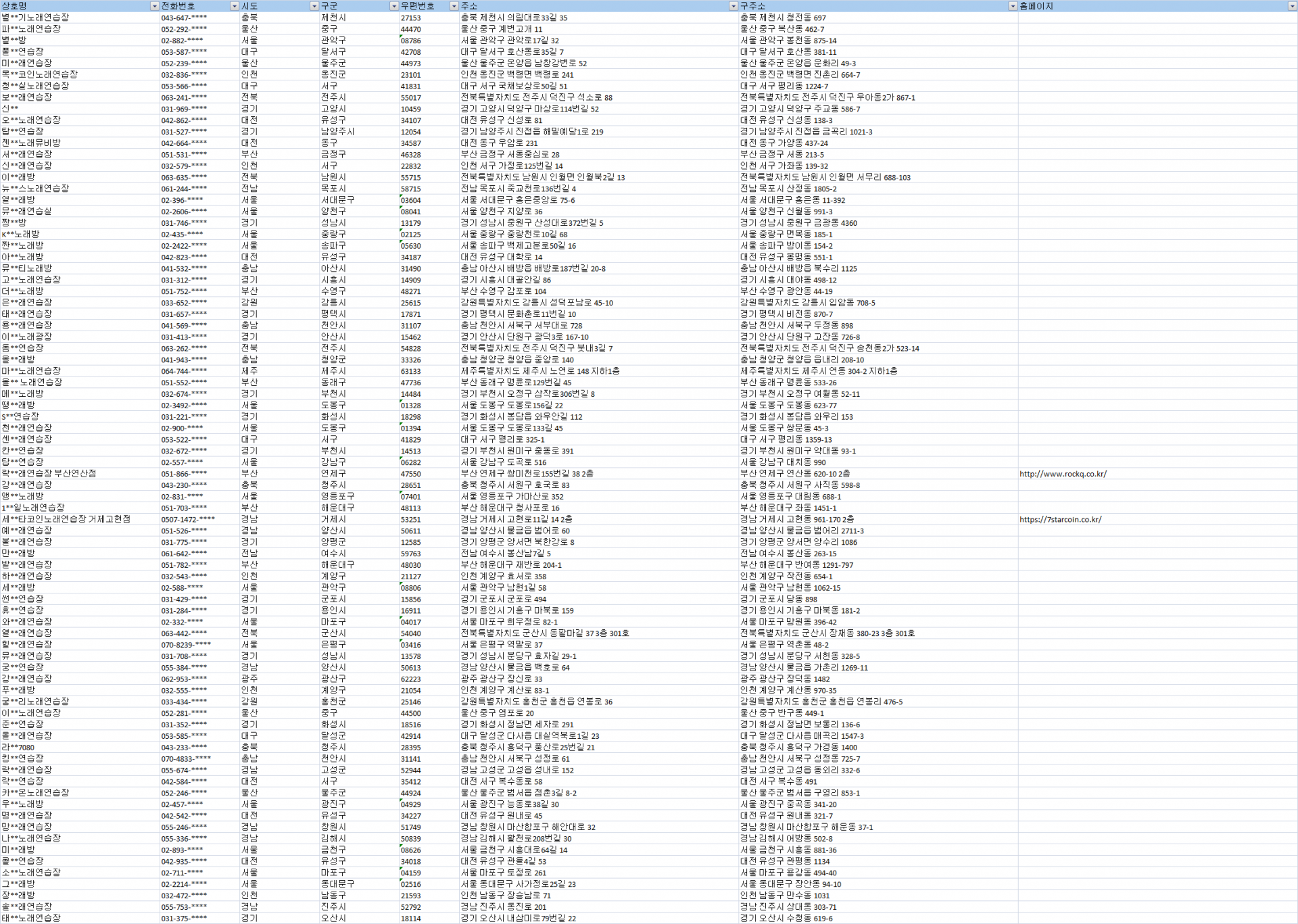 #노래방주소록 #노래방디비 #노래방DB #전국노래방리스트 #전국노래방 #노래방연락처 #노래방전화번호 #노래방목록