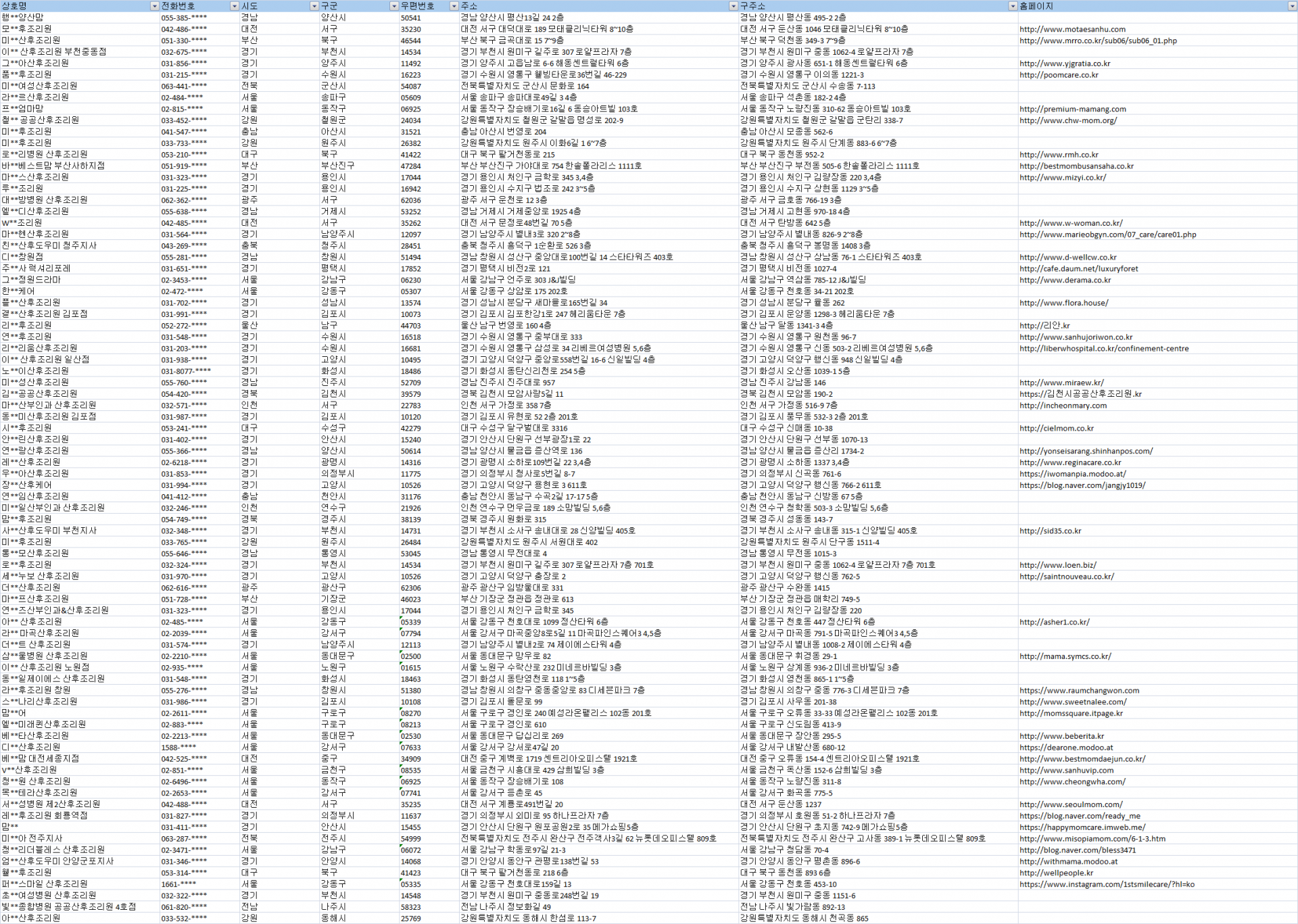 #산후조리원주소록 #산후조리원디비 #산후조리원DB #전국산후조리원리스트 #전국산후조리원 #산후조리원연락처 #산후조리원전화번호 #산후조리원목록