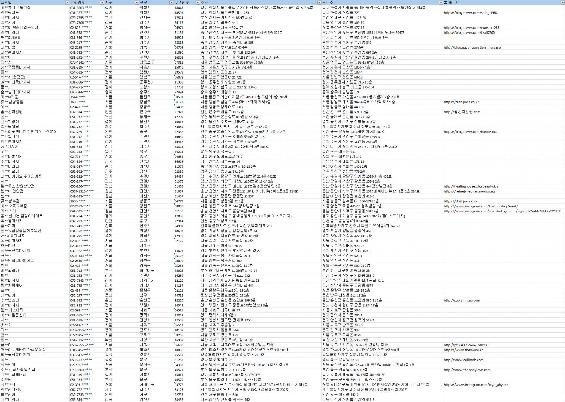 #마사지샵주소록 #마사지샵디비 #마사지샵DB #전국마사지샵리스트 #전국마사지샵 #체형관리주소록 #체형관리디비 #체형관리DB #전국체형관리리스트 #전국체형관리 #다이어트 #비만
