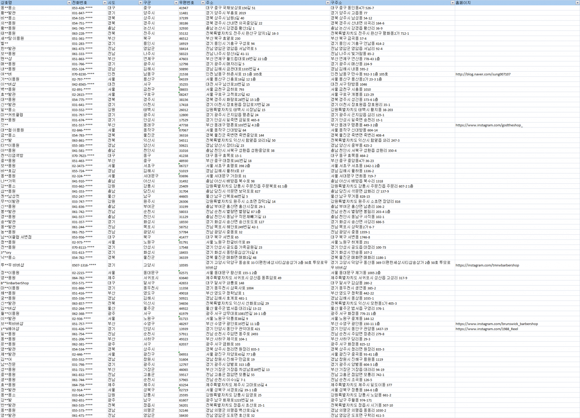 #이발소주소록 #이발소디비 #이발소DB #전국이발소리스트 #전국이발소 #이발소목록 #이발소전화번호 #이발소연락처