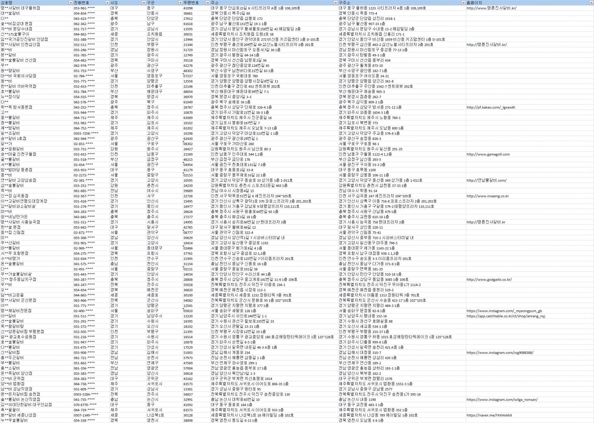 #갈비집주소록 #갈비집디비 #갈비집DB #전국갈비집리스트 #전국갈비집 #음식점 #식당 #고기집
