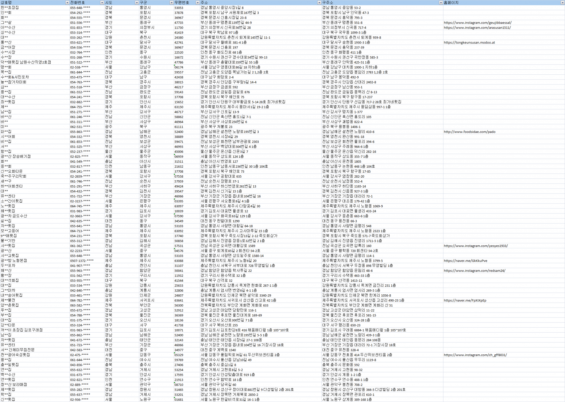 #횟집주소록 #횟집디비 #횟집DB #전국횟집리스트 #전국횟집 #횟집목록 #음식점 #식당 #회집연락처 #회집전화번호