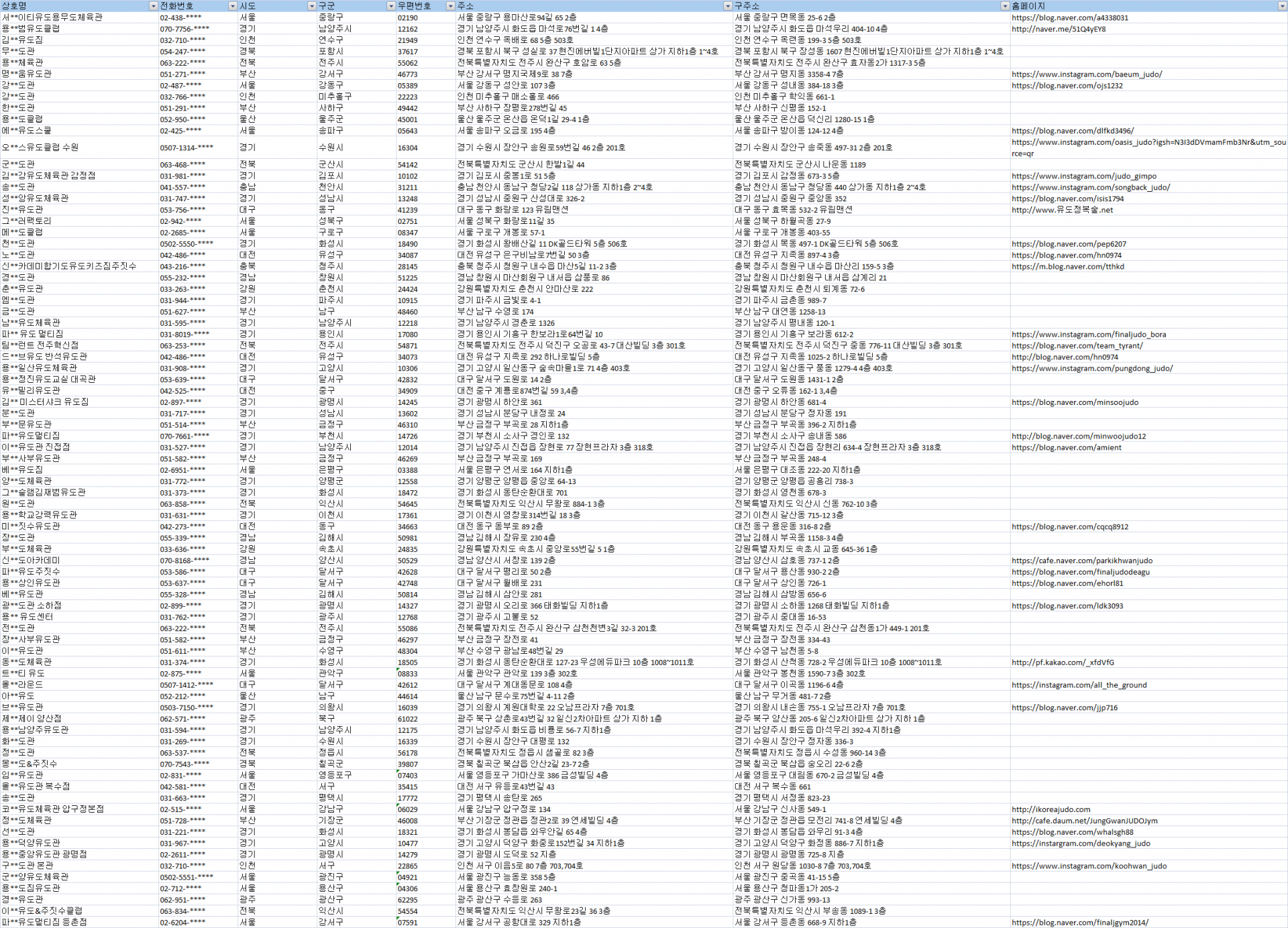 #유도주소록 #유도디비 #유도DB #전국유도리스트 #전국유도장