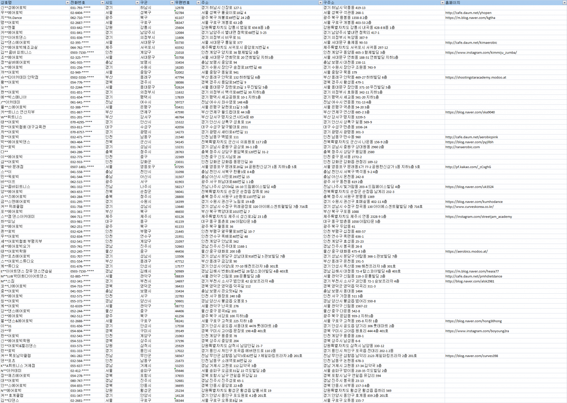 #에어로빅주소록 #에어로빅디비 #에어로빅DB #전국에어로빅리스트 #전국에어로빅