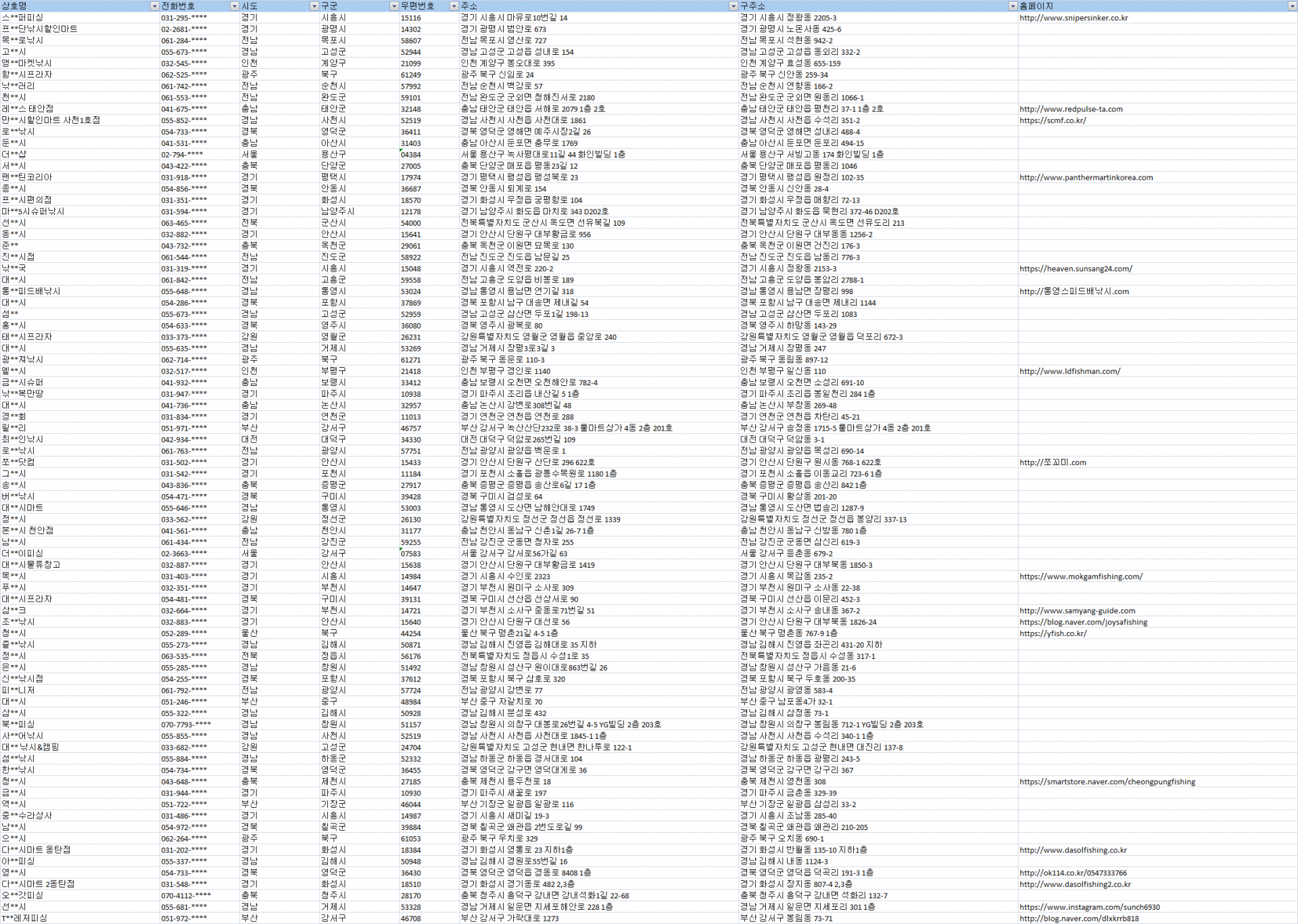 #낚시용품점주소록 #낚시용품점디비 #낚시용품점DB #전국낚시용품점리스트 #전국낚시용품점 #낚시용품점연락처 #낚시용품점전화번호 #낚시용품점목록