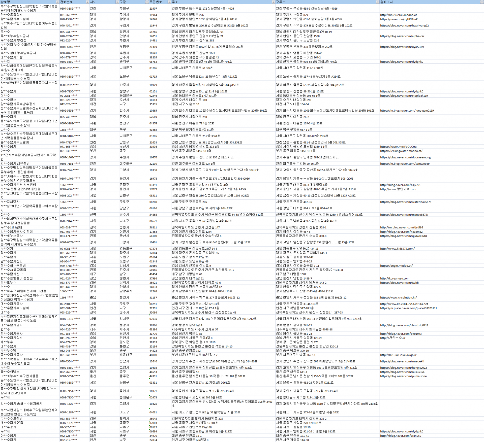 #배관시공주소록 #누수시공디비 #누수시공DB #전국배관누수시공업체리스트