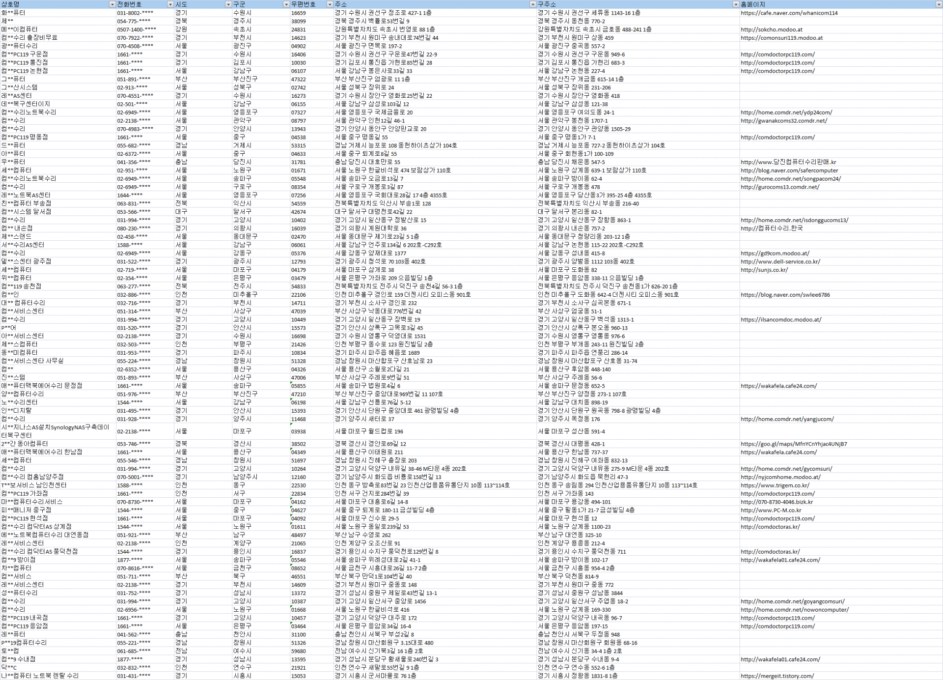 전국 컴퓨터수리 업체 주소록
