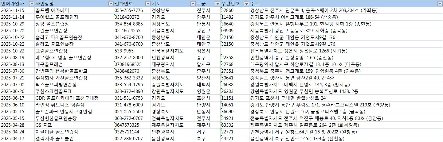 #스크린골프연습장주소록 #스크린골프연습장디비 #스크린골프연습장DB #전국스크린골프연습장리스트 #전국스크린골프연습장 #골프연습장연락처 #골프연습장목록 #스크린골프장주소록 #스크린골프장전화번호 #스크린골프장DB