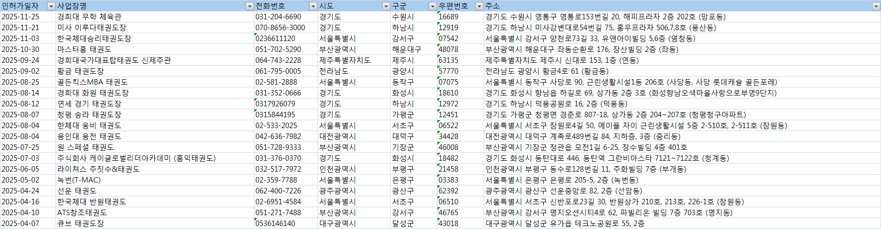 #태권도주소록 #태권도디비 #태권도DB #전국태권도리스트 #전국태권도 #태권도학원주소록 #태권도학원연락처 #태권도학원전화번호