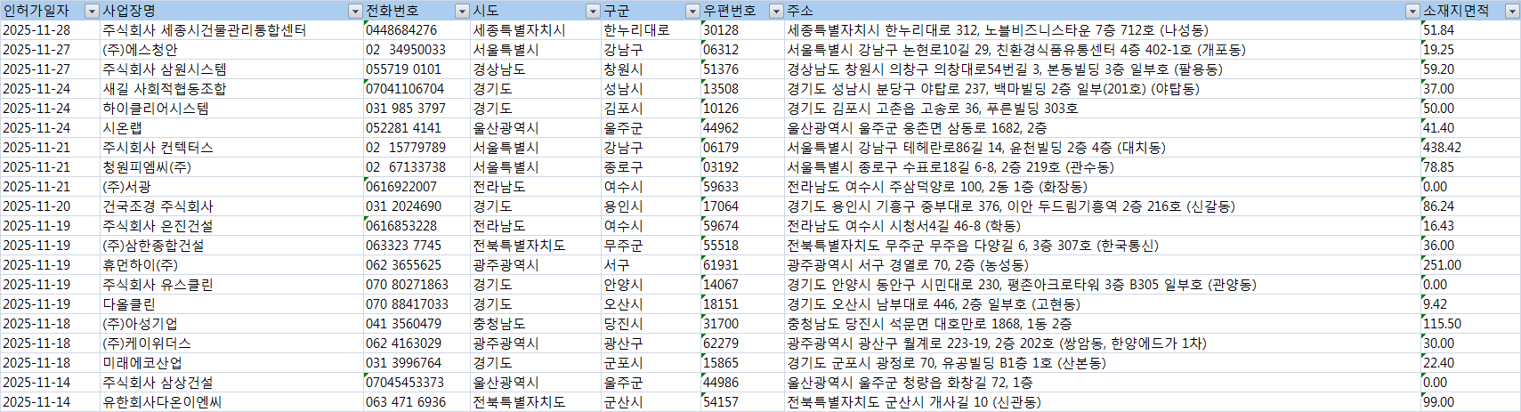 인허가일자 최근 기준으로 정렬되어 있습니다.