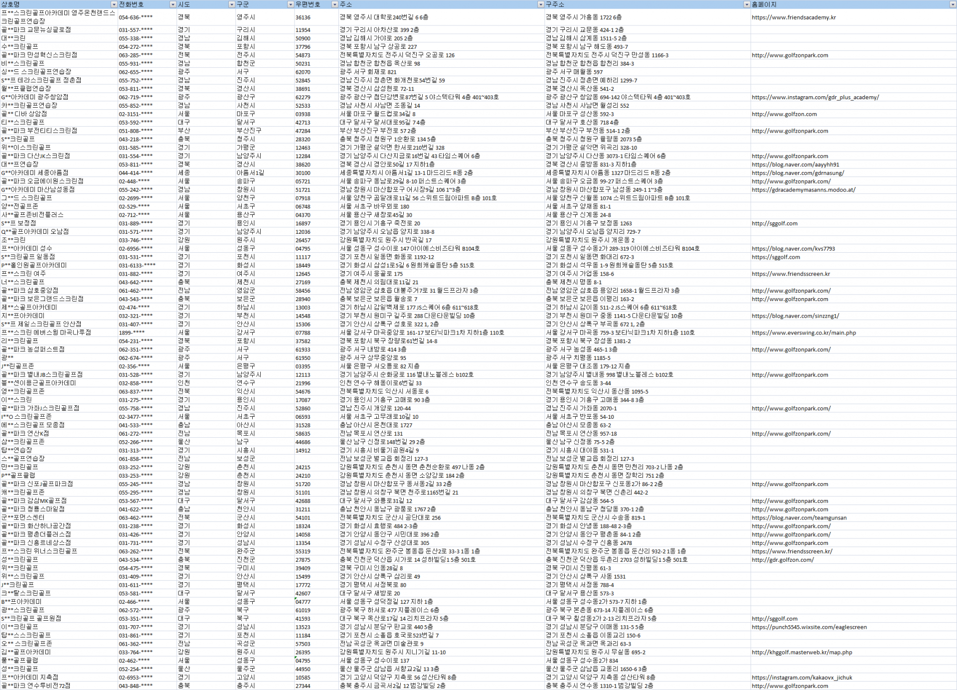 #스크린골프연습장주소록 #스크린골프연습장디비 #스크린골프연습장DB #전국스크린골프연습장리스트 #전국스크린골프연습장 #골프연습장연락처 #골프연습장목록 #스크린골프장주소록 #스크린골프장전화번호 #스크린골프장DB